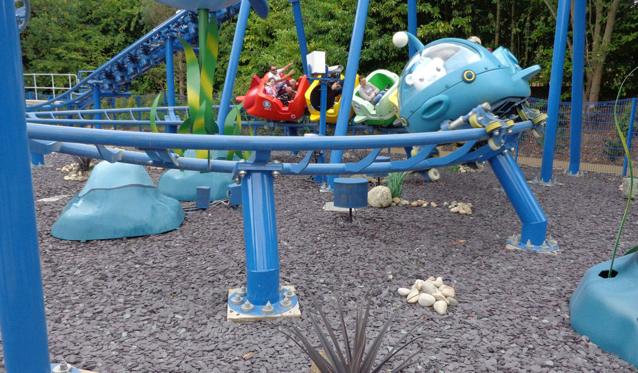 A Junior coaster experience based on Cbeebies's "Octonauts" series, featuring additional 3d and audio themeing to the coaster and surrounding areas.
